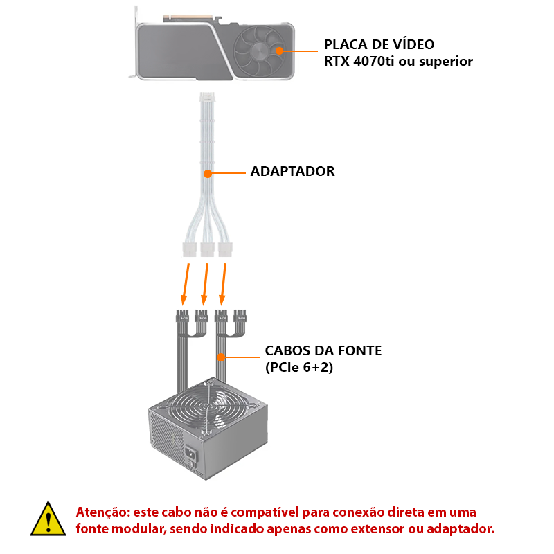 - Não é compatível para ligar diretamente na fonte modular, indicado somente como adaptador ou extensor.