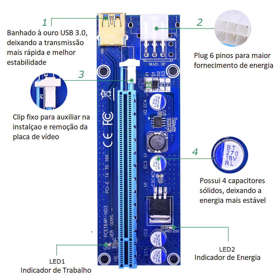 Obs: Esta é a versão mais recente de adaptador Riser, funciona com qualquer placa de vídeo!